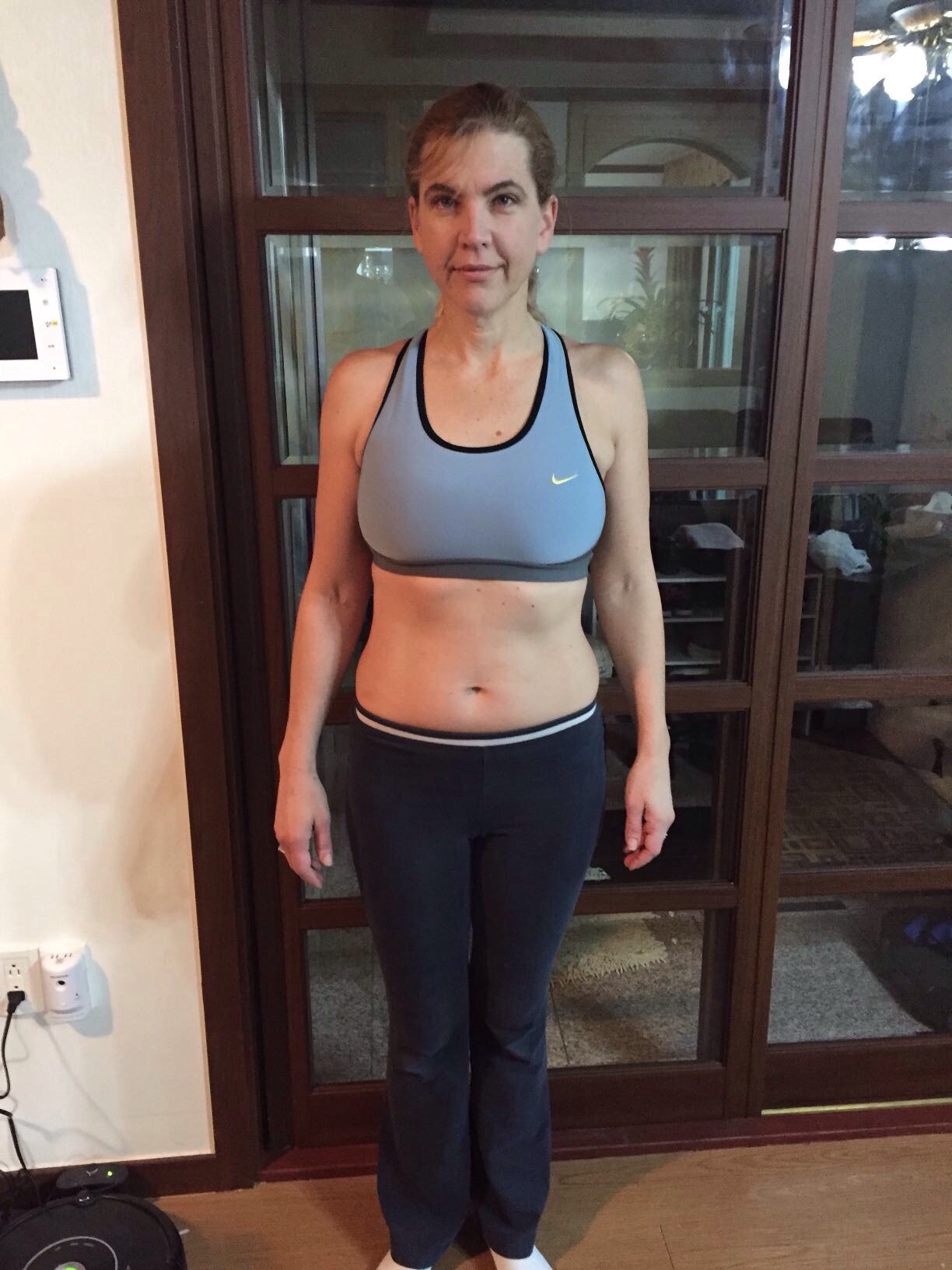 So, the plan for today is this: I’ve already run a mile on the treadmill, I did a 5 minute warm-up, with an 8min 37sec mile in between and a 5 min cool-down. I also found out this morning that during our move, the movers have broken the incline part of the treadmill, surprisingly that’s all they broke on it, given the state it arrived in! Not happy, but what can you do. So, I shall spend my day putting more stuff away and getting more organized with the intent to find the pioneer did player so that when hubby comes home this afternoon, we can do T25 together. I don’t like exercising in the afternoon though, so this won’t work for me in future, but for today, it will have to do. As far as the mile goes, it wasn’t as bad as I thought it would be, I didn’t push myself super hard, just ran with it not really worrying about my pace. My plan is to do 1 mile daily for the first week of this challenge and see how I feel and go from there as to whether or not to increase my miles. I really need to see how my body goes with doing both T25 and running. On a more personal note, I am putting out some before photos of my body below. This is a huge deal. Yes, very raw photos, just like the one of my face as the article’s featured image. It’s scary. These are going out there on the World Wide Web and normally we do everything we can to make ourselves look beautiful and perfect and hide our flaws and I am putting mine out there for everyone to see! I’m not going to go so far as to share my weight or measurements with you though, but I will let you know how much, if any, I have lost at the end of 60 days. And I will of course put my afte photos out there as well!m