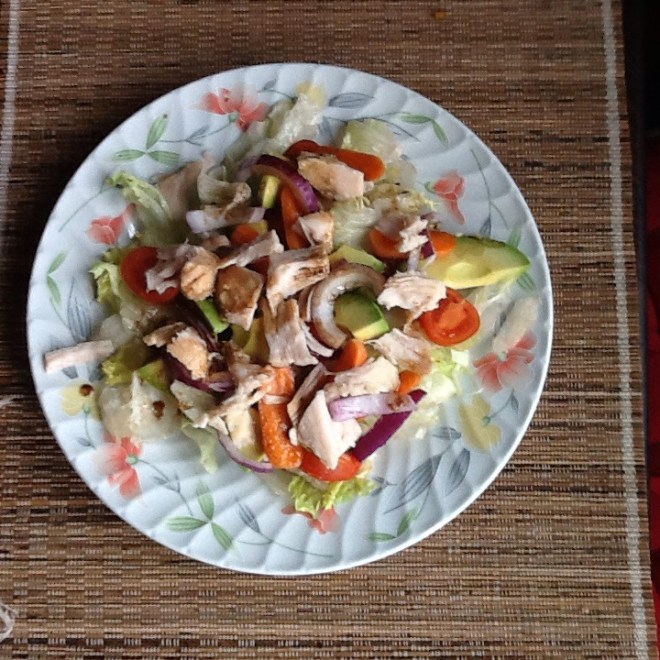 Doesn’t that look wonderful? I never take the time to make myself a yummy lunch and to be honest, I’m a bit of a fuss pot so there’s a lot of healthy food that I don’t really like, but everything on this plate was so simple to put together and tasted amazing and filled me up! I think that’s a pretty good win for a Tuesday! The chicken is from the cans of chicken meat from Costco, not something I’m normally into but who has time on a weekday to cook up a fresh breast of chicken? Not this lady, I can assure you! Anyway, with a little drizzle of balsamic vinegar over it, the whole thing was not only yummy but good for you too! It’s taco Tuesday, so I thought I’d better eat something to fill me up until dinner and something that doesn’t have a whole heap of calories in it, not that I’m dieting, let me make that very clear, I’m just trying to eat a little better because for over two months we did nothing but eat out! Hence the extra rolls I am now trying to tone down.