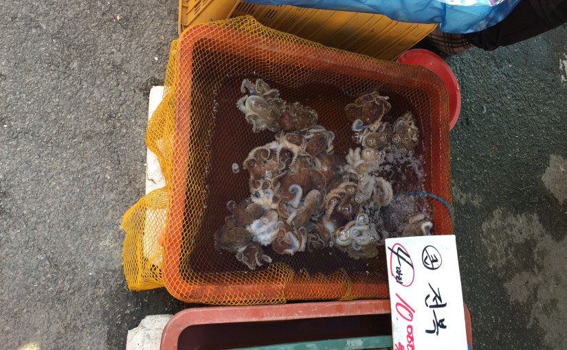 We still had some free time before Madison came home on the bus so we drove to, and wandered around a ‘hypermarket’ (the commerce definition of a mix between a supermarket and a department store) called EMart. It’s always interesting to wander around a store in a foreign country, I find it even more fascinating when you can’t read what anything is. I almost grabbed a bag of what I thought was dried coconut pieces because it had a picture of a coconut on it, thankfully it had written in English (in minute writing mind you) that it was actually dried fish! Why would you put a picture of a coconut on a packet of dried fish? There was not a fish in sight on the packaging! Something else we found was that there was nothing in the store that would fit my husband. He’s 6ft with fairly broad shoulders. Not a small guy by any means. He found a really nice dress shirt & we asked about a bigger size but the girl just looked at him like he was crazy. It was actually quite funny. She started looking through the box like she was hoping one was going to appear out of thin air, all the while knowing no such shirt existed! Then he looked at a pair of shoes and found a pair he really liked but this sales assistant just started shaking her head like he was dreaming. She did however write the style number down in case we won the Korean Hush Puppy lottery and could find a pair in his size. Needless to say, we walked away from the menswear section empty handed.