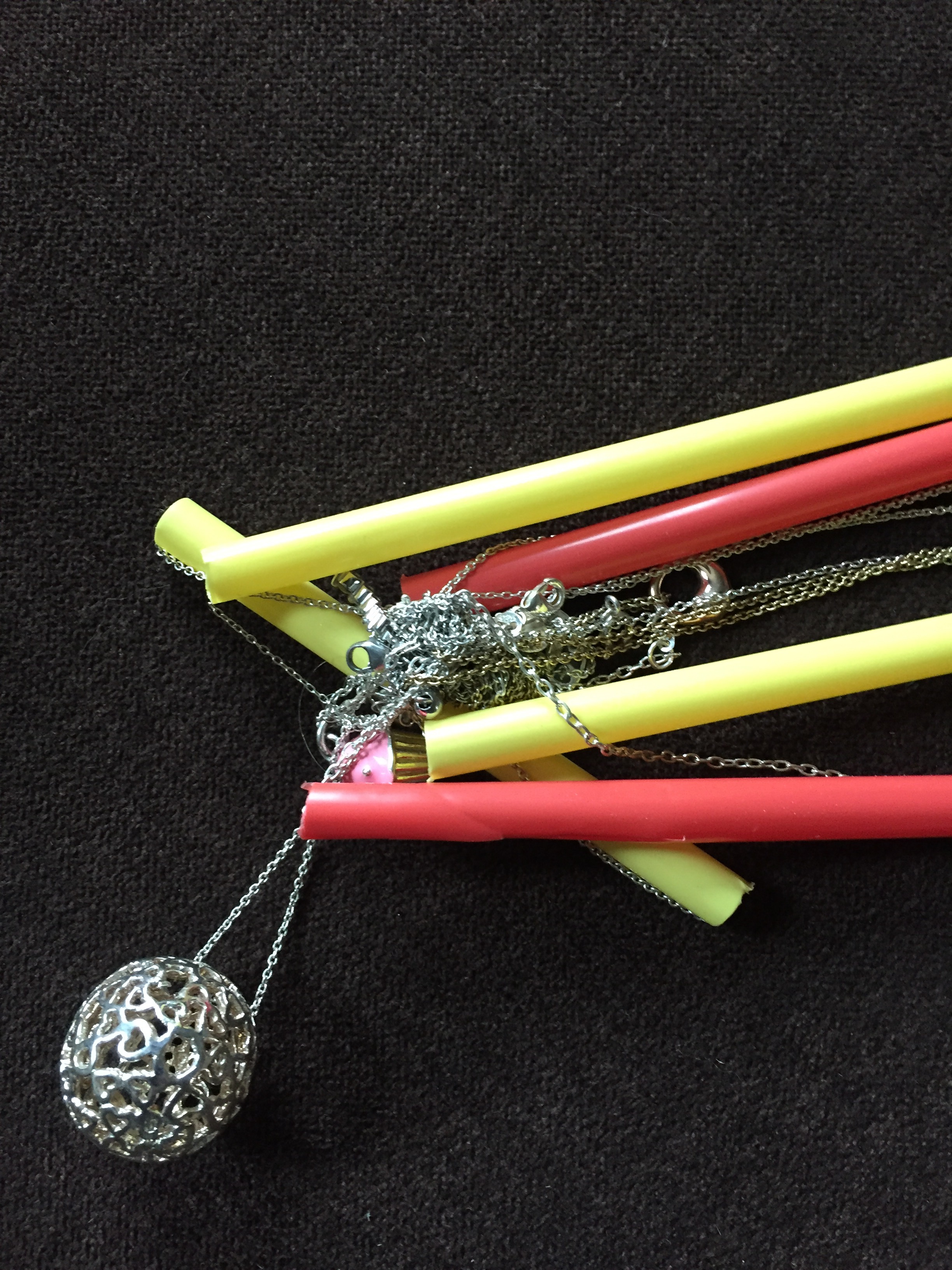 Yes, even though I had gone to Pinterest and tried to use the idea of the straws to ensure my necklaces didn’t get tangled on our cruise and subsequent trip over here, they did. Big time! Afterwards, I used big straws, sometimes doubling them, so there was no room for extra chains/possible tangles.