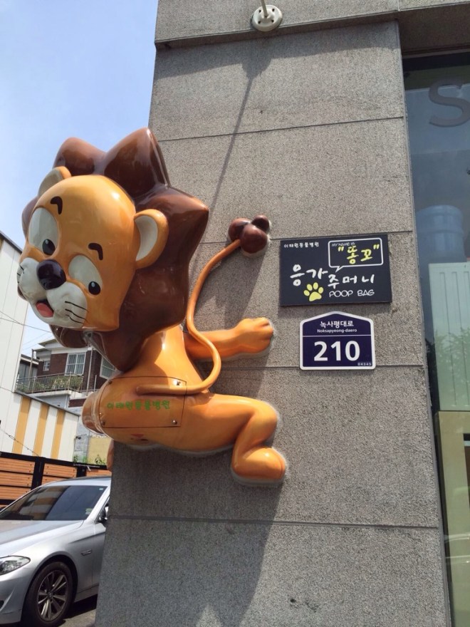 The walk around the area was also entertaining, the Koreans love to have fun things about and the location of poop bags to clean up after your doggy’s mess, (though empty) cracks me up every time I look at the photo! Pardon the pun!