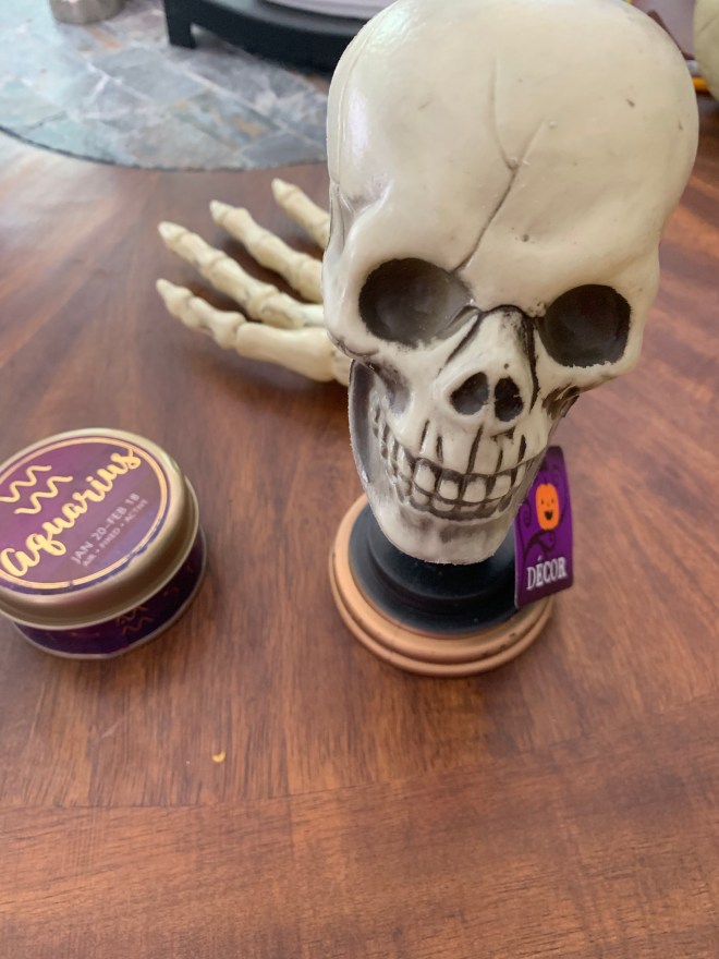 I got a glue gun and took the strands from the mop and glued them to my skull. Nothing fancy, just gluing wherever they looked good. Then it’s a matter of putting it all together, I’ve seen similar projects with skeletons inside the baskets or even homemade ‘monsters’, as I said I opted for something super simple. The process was very easy and maybe took all of 20 mins (excluding drying time).